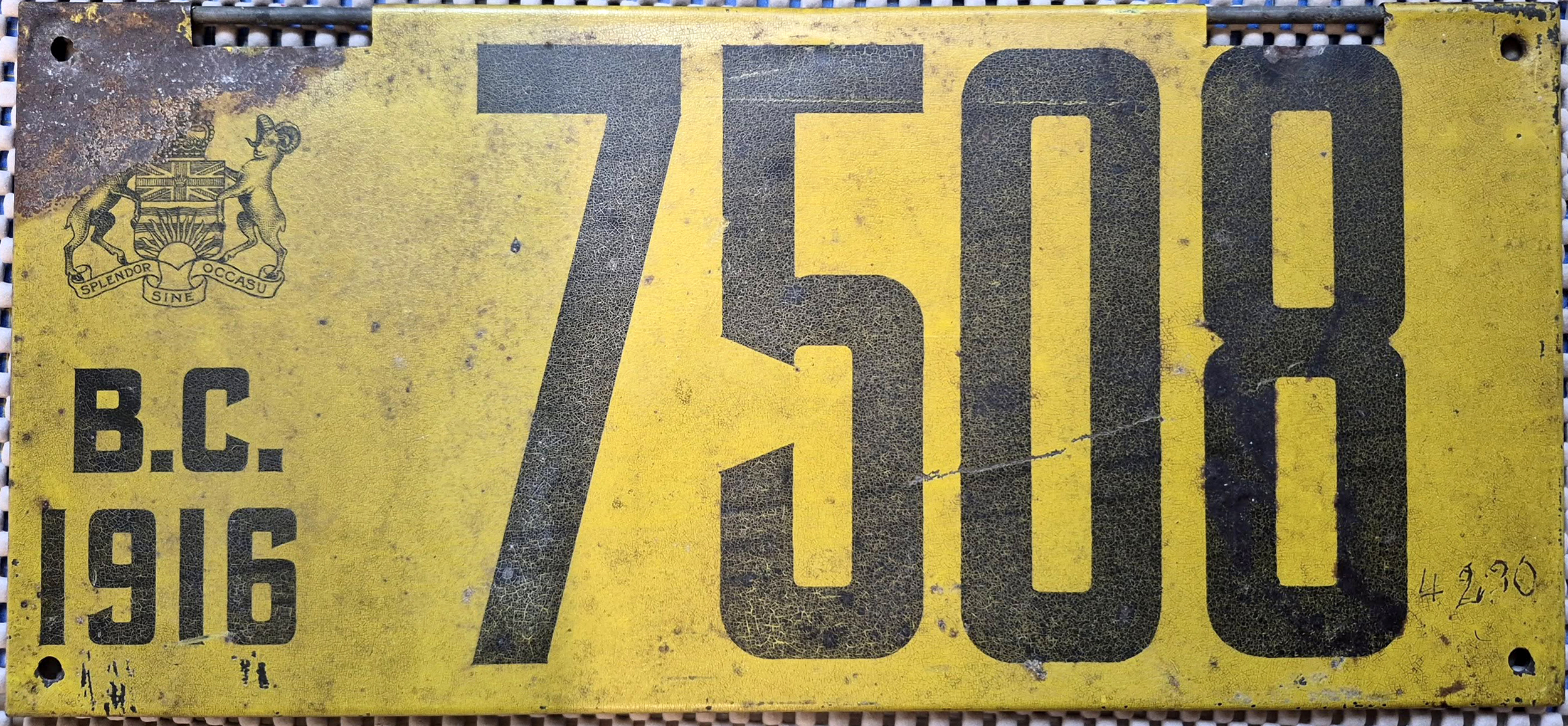 What is partcularly neat about this photo is that it shows two of the different design variations found on the 1917 plate, with the low quality version common on the low digit plates (i.e. No. 2489) showing noticeable wear-and-tear after only 6 months of use. |